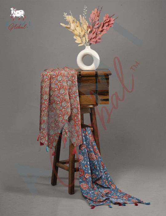Our tasseled stole adds a touch of beauty to any outfit you pair it with. It makes for a perfect travel companion as this soft cotton stole can be folded like a handkerchief occupying least space.