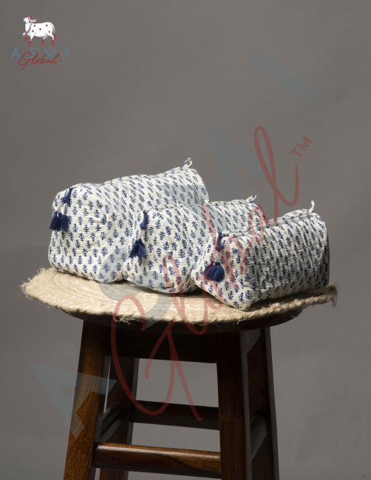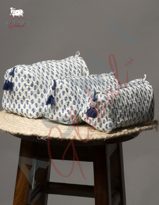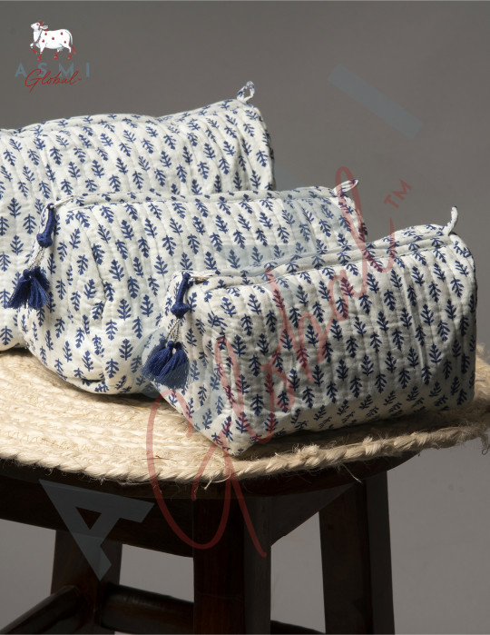 Our quilted wash bag range in beautiful hand block prints is designed to keep all things you need. It is easy to carry and use and fits well in bags. Its inner pockets make for a great organizer and a perfect travel accessory bag. It has varied uses like a wash bag, toiletry bag, cosmetic bag, shaving bag, etc.