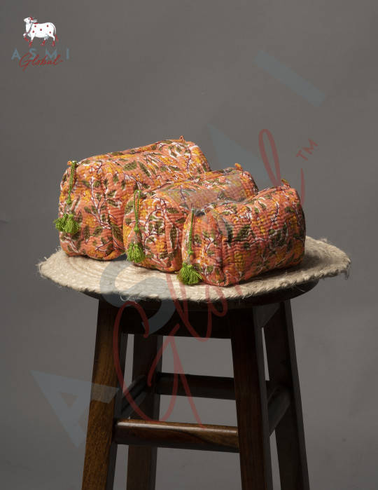 Our quilted wash bag range in beautiful hand block prints is designed to keep all things you need. It is easy to carry and use and fits well in bags. Its inner pockets make for a great organizer and a perfect travel accessory bag. It has varied uses like a wash bag, toiletry bag, cosmetic bag, shaving bag, etc.